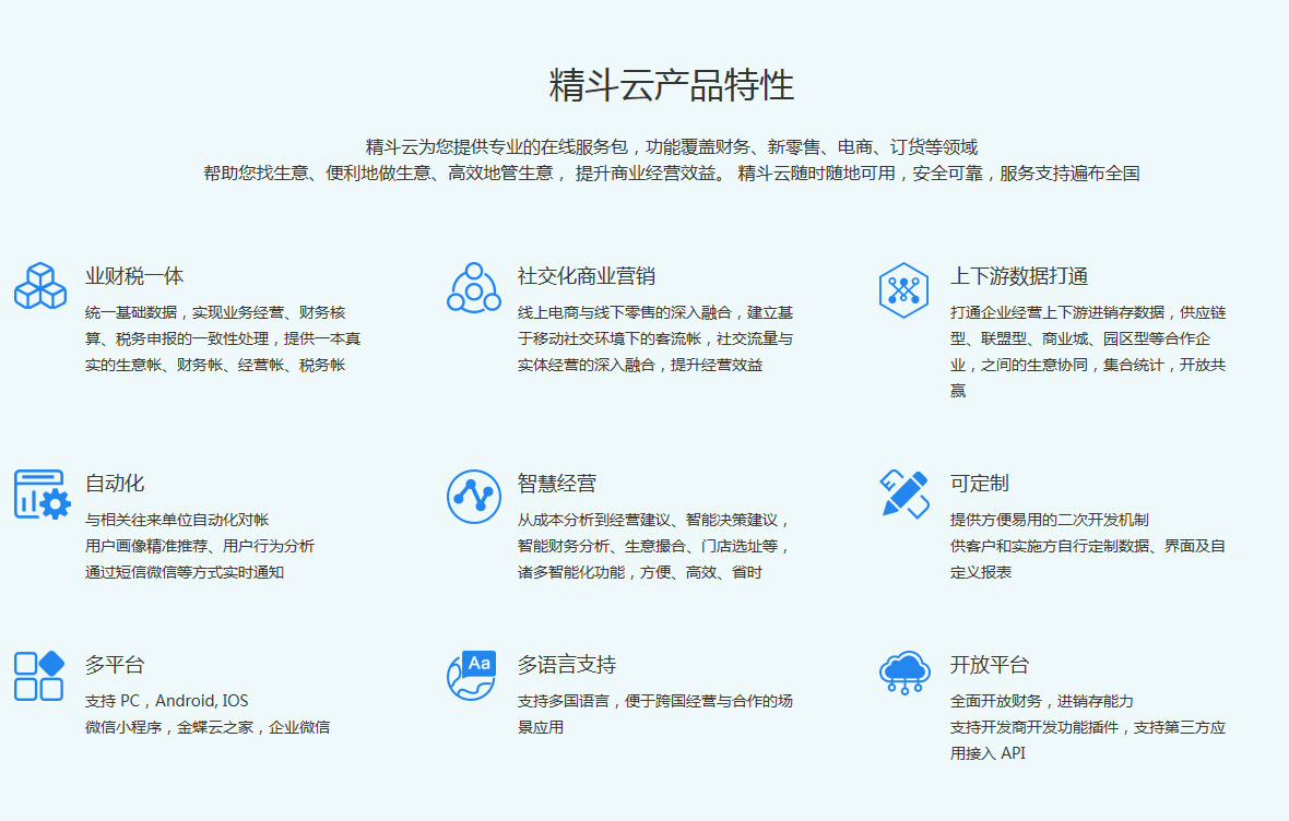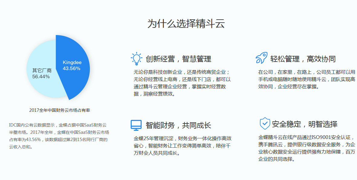 金蝶精斗云云会计,为小微型企业量身定制的在线财务软件,通过PC端、手机端、微信随时随地记账查账,发票识别、智能记账、自动报表,实现企业账、证、表等会计业务处理,帮助企业简单、智能化财务核算。主要功能:财务处理、报表、固定资产、出纳。